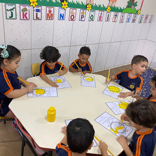 A turminha do Infantil 2 não só pintou o sol, mas também aprendeu sobre a cor amarela de forma divertida e prática. Enquanto trabalham com a tinta, eles estão fortalecendo a coordenação motora fina e o controle dos movimentos.